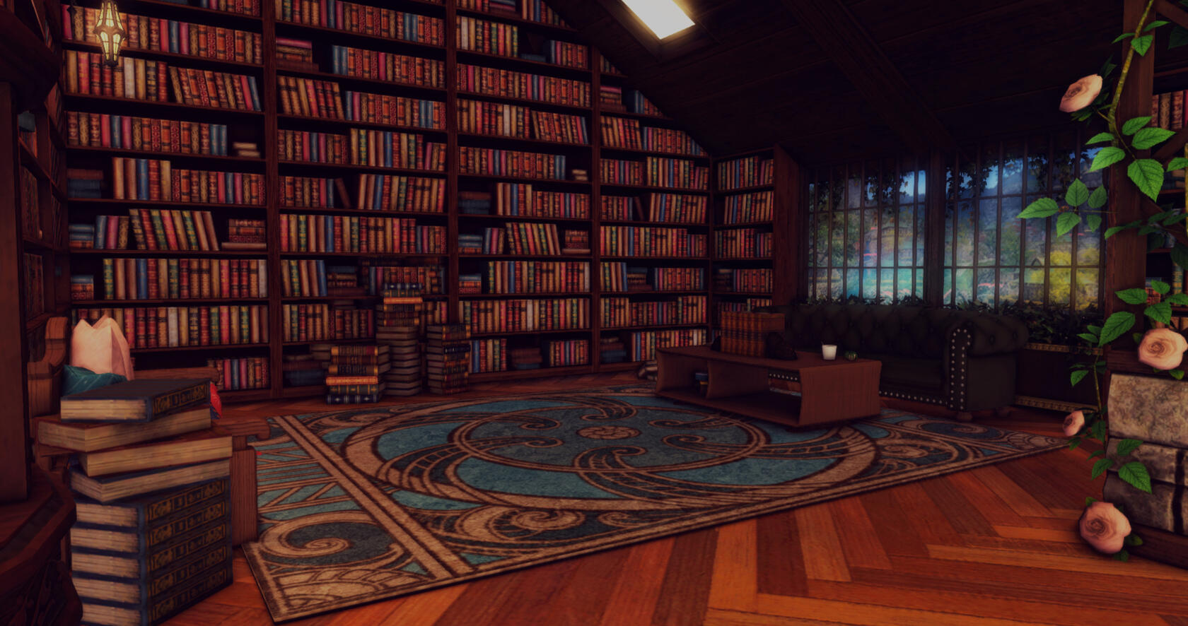 Inside, The Enchanted Inkpot exudes an atmosphere of quiet enchantment. Towering bookshelves stretch from floor to ceiling, brimming with tomes both ancient and newly bound, their spines gleaming in the dappled sunlight that pours through the large windows. Cozy reading spots are tucked into every corner, sofas with embroidered cushions and soft woolen blankets for those who wish to lose themselves in a book for hours. The walls are adorned with dried herbs and whimsical, pink roses, helping to create and experience for all the senses. Each sight, sound, and smell is meant to create a space where one can lose themselves in a truly magical reading experience.